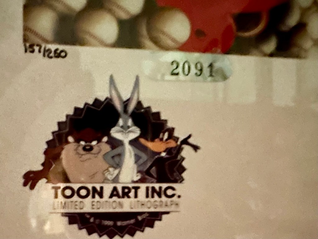 Item: Limited Edition Warner Bros. sericel of Bugs Bunny in baseball attireAutographed by Wade Boggs Stamp: Official Warner Bros. seal from 1992 with “McMahon Production Inc.” authentication